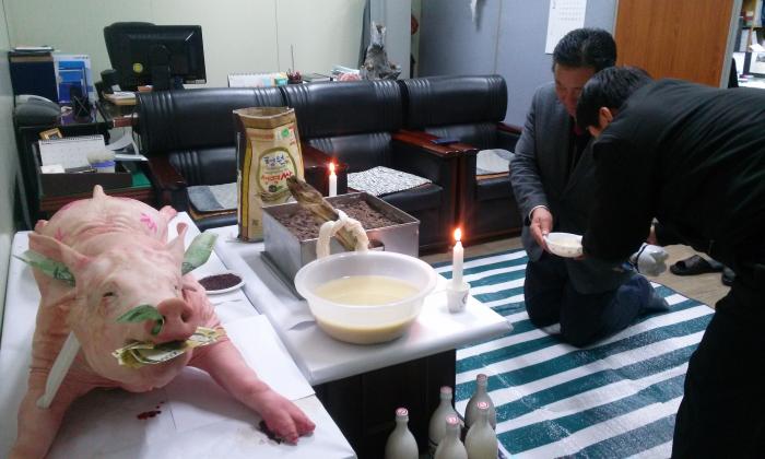 회사의 발전과 안전을 기원하는 기원제를 지냈습니다.