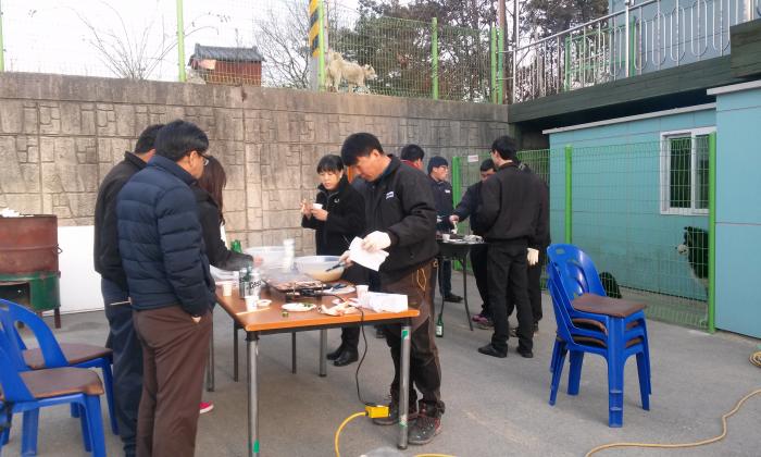 기원제를 지낸후 직원들과 화합을 위한 회식자리를 마련 맛있는 고기두